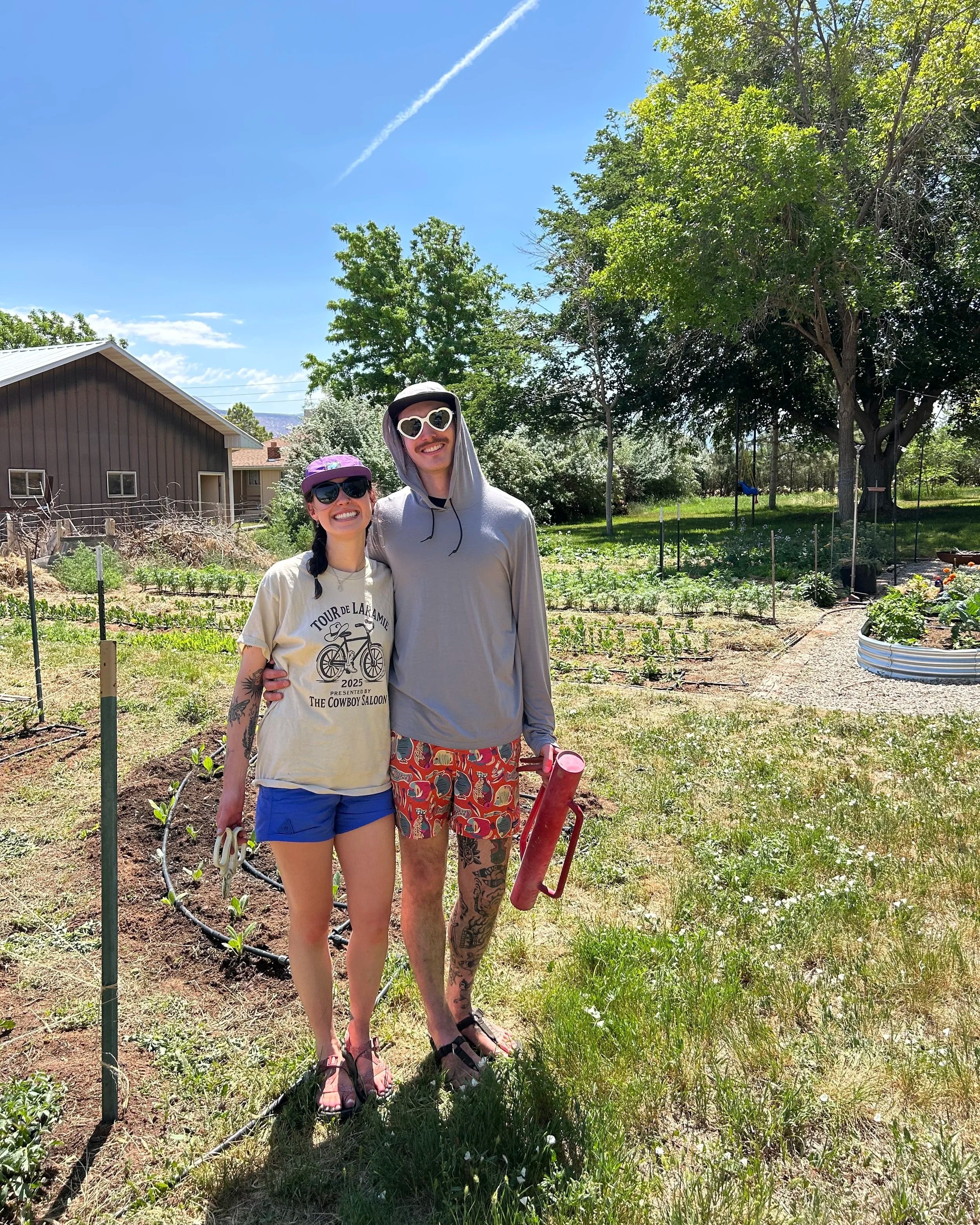 It’s been hard to put into words the experience of working with these two for their wedding flowers last year. They were dream clients! Not only were they excited about locally grown flowers, they wanted to be part of the process. When S & C reached about about hiring us for their wedding, they asked if they could come volunteer at the farm on one of their visits to Moab the Spring before their October wedding. Of course our response was “Hell yes!” They are gardeners and creatives themselves, plant lovers and just all around great humans. We made plans for a day in June and they joined me in one of the gardens, trellising the young dahlia plants, pinching the giant marigolds to encourage more stems and stronger plants, and mulching with alfalfa to promote water conservation, feed the soil and keep it cool over the Summer. They touched many of the plants that later became major parts of their designs. We had lunch after and chatted about flowers, our cats and all the things.